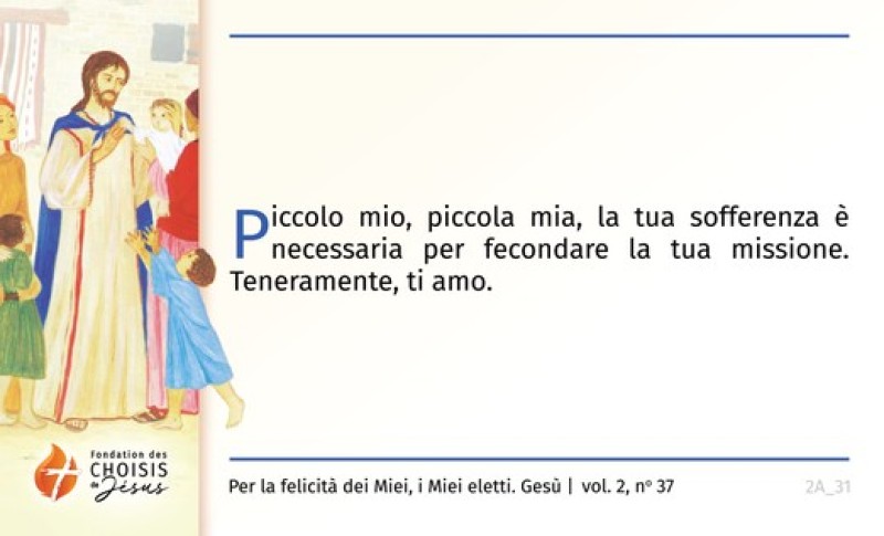 Piccolo mio, piccola mia, la tua sofferenza è necessaria per fecondare la tua missione. Teneramente, ti amo.