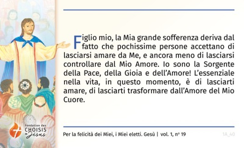 Figlio mio, il Padre vuole insegnarti un altro modo di guardare i tuoi problemi e di dar loro una soluzione, di vedere tutto con gli occhi della fede, di abbandonare tutto nelle mani di Dio ... così tu, nella meraviglia, nella lode e nel giubilo, sarai testimone del Suo agire. In seguito potrai insegnare quello che tu hai vissuto.