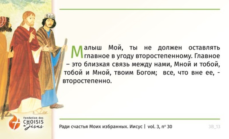 Малыш Мой, ты не должен оставлять главное в угоду второстепенному. Главное – это близкая связь между нами, Мной и тобой, тобой и Мной, твоим Богом; все, что вне ее, - второстепенно.