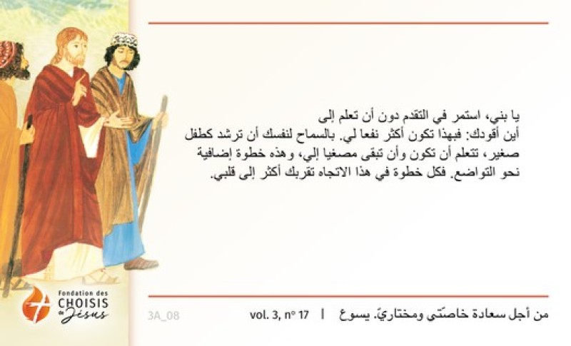 يا بنى، استمر فى المضى للأمام أينماأقودك: ههنا ستكون أكثر نفعاً لى. عندتركك القيادة لى كما لوكنت صغير ،ستتعلم كيف تعيش وتستمع الىﱢ، وتكونهذه خطوة اضافية نحو البساطة. كلخطوة فى هذا الاتجاه تقودك أكثر قرباًمن قلبى.