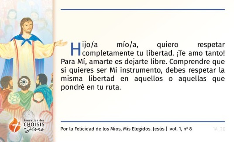 Hijo/a mío/a, quiero respetar completamente tu libertad. ¡Te amo tanto! Para Mí, amarte es dejarte libre. Comprendre que si quieres ser Mi instrumento, debes respetar la misma libertad en aquellos o aquellas que pondré en tu ruta.