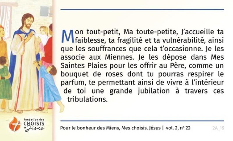 Mon tout-petit, Ma toute-petite, tu es à l'école de l'Amour. Je t'ai choisi/e; J'ai besoin de toi. Ce n'est pas ce que tu fais ou dis qui est important, mais bien l'Amour qui habite ton coeur.